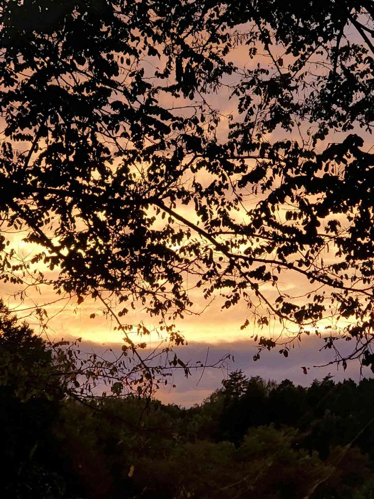 降り続いた☔が上がりベランダから見る西の空は黄金色に染まっています。