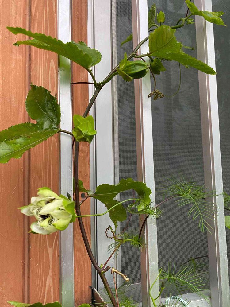 東側のグリーンカーテンにしていた花友さんからいただいたトケイソウに、やっとツボミができました⏰