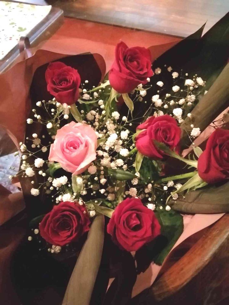 今夜の誕生日ディナーで、旦那さまからサプライズの花束💐