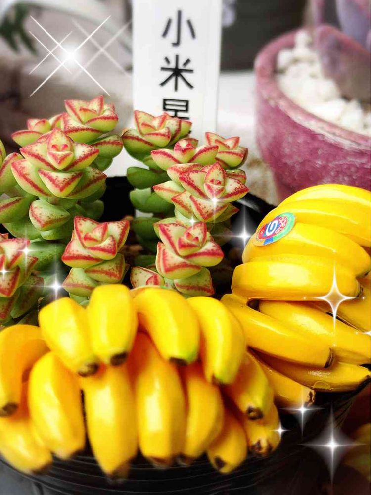 キレイに色づいてる小米星だねーー!どんな環境で育ててるー??我が家のは。。赤が取れちゃった( ̄。 ̄;) ってかーー!!バナナが可愛すぎる!!作ってみようかなーー