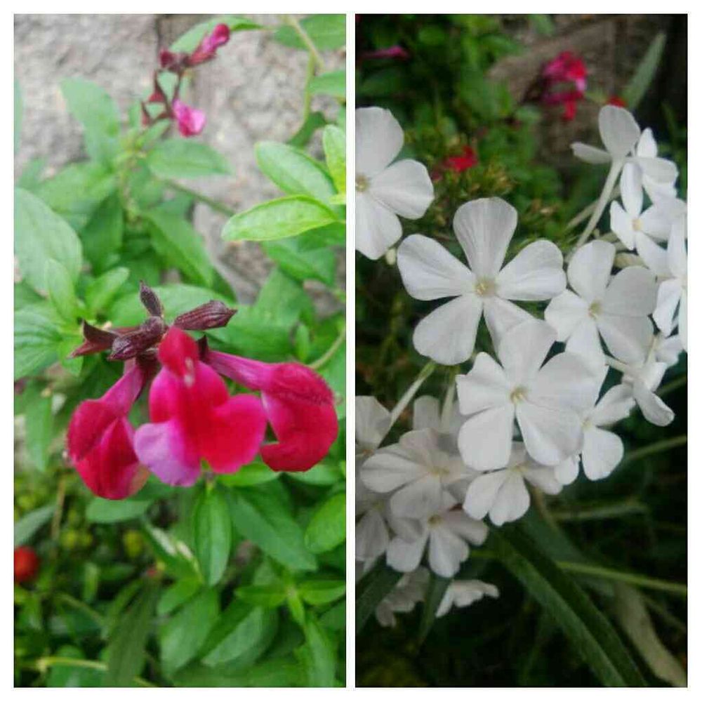 赤のチェリーセイジと白の花魁草🌼 紅白でお祝い💐💐💐
