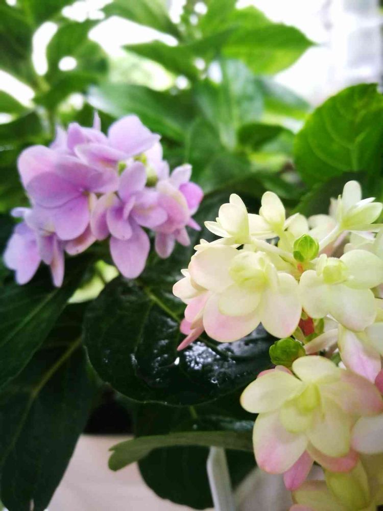 来期用で購入した紫陽花に花が咲きました。それも2種類😅