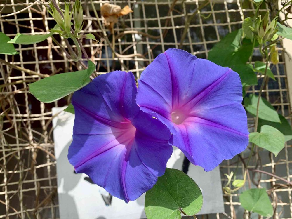 この、琉球朝顔、5月位から11月位まで咲いてる元気な子ですね、種を貰ったので、来年の、日除けに植えようと思っています。