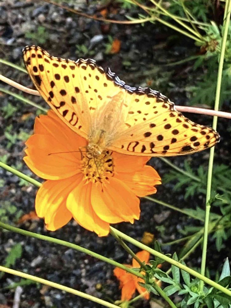 秋のコスモス🌸蝶も一生懸命🦋ですよね〜(❁´ω`❁)*✲゚*