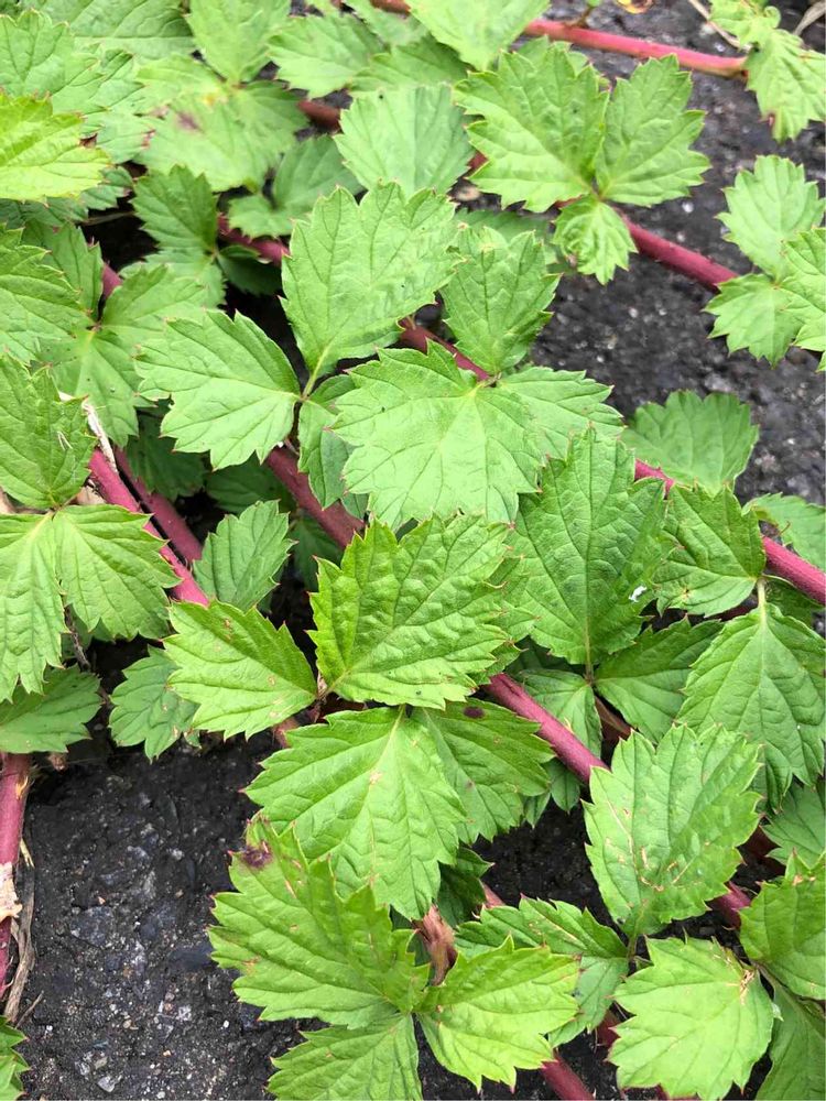 苔玉教室駐車場に蔓延っている植物。葉と赤い軸が綺麗で、ツルを引っ張ると釘のようなトゲで地面にくっついています。