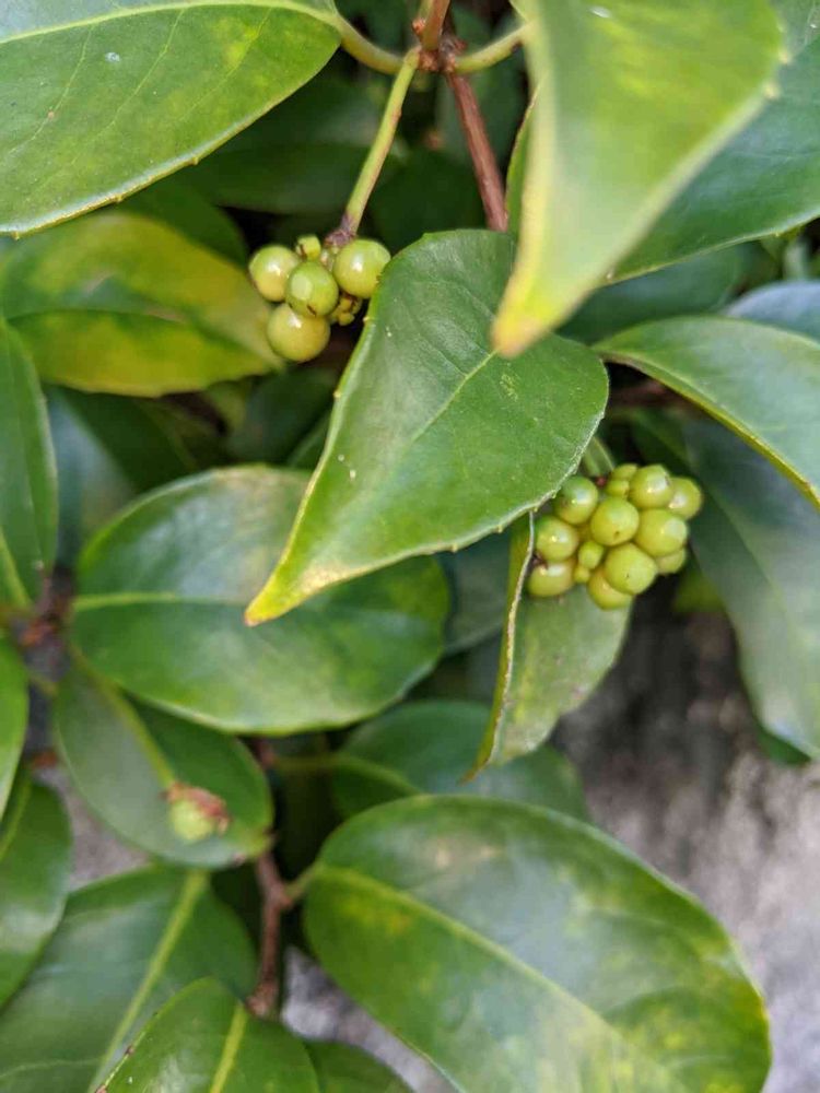 葉っぱが青々していて、実が丸くなくて、サネカズラには見えませんでした、よく見れば納得です、