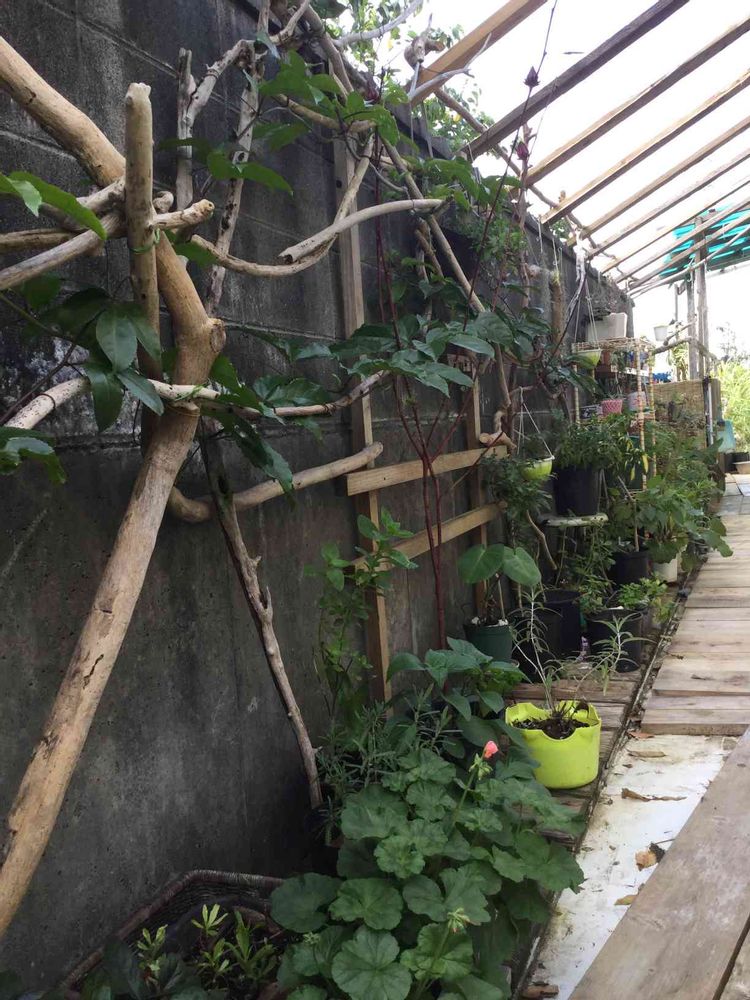 流木から伝えるようにパーゴラを作った^_^