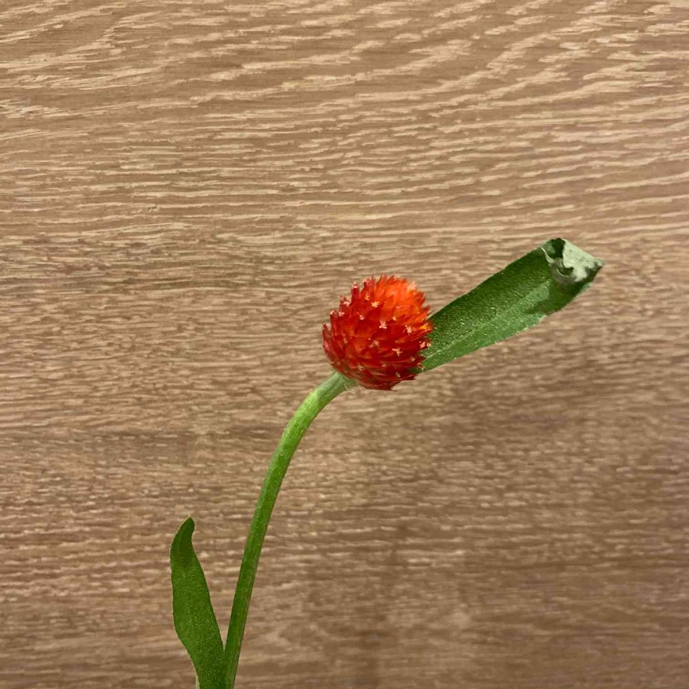 今日の一花。千日紅。密かにずーっと狙っていた一花さん。こう見えて、意外とドライ向きなんですって(^^)このコのお名前はストロベリーフィールドさん。