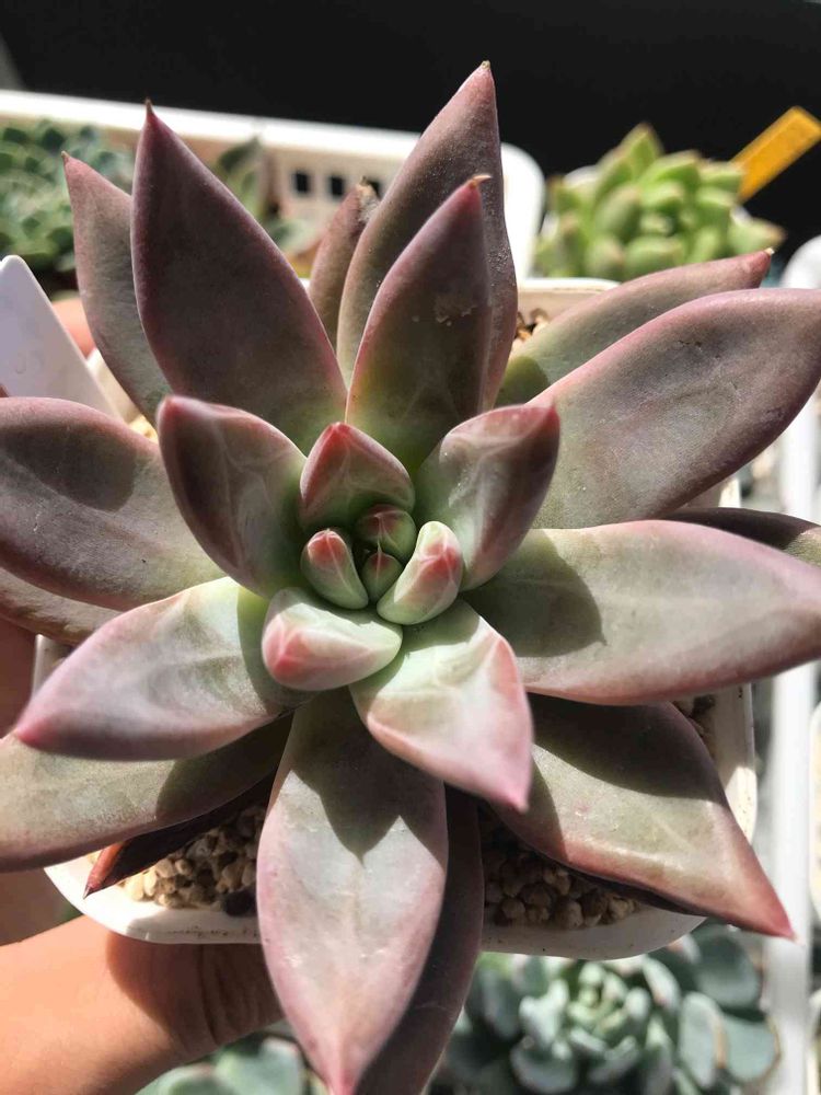 多肉にハマり始めた頃にお迎えしたやつで、ツンツンとウォーターマークが気に入ってます。
