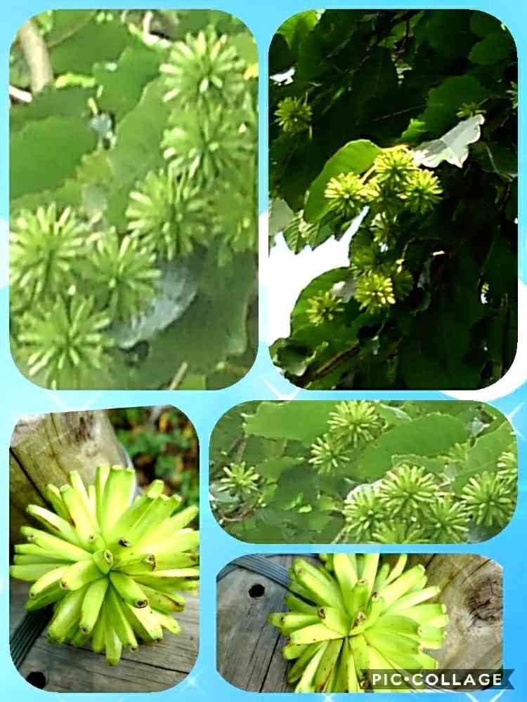 落葉高木で夏に薄いクリーム色の花が咲きその後にこの写真の様な実が出来る。