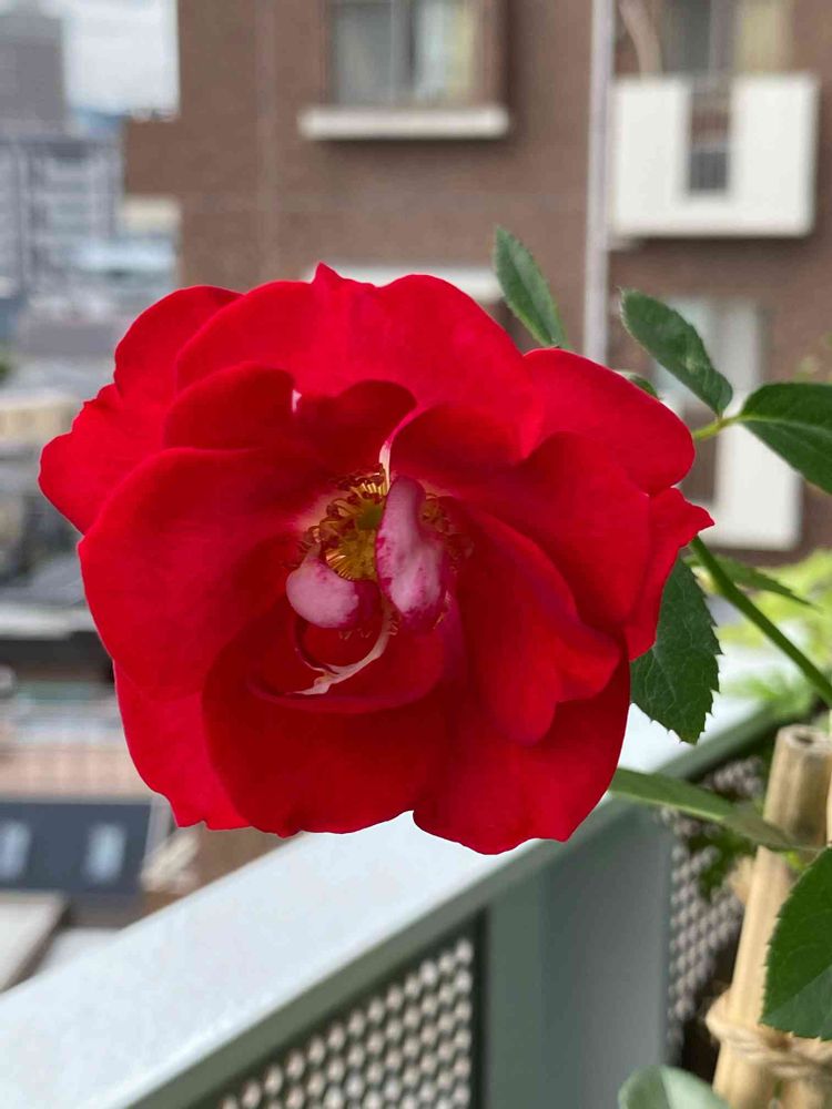 バルコニー/ベランダ,バラ,赤い花の投稿画像