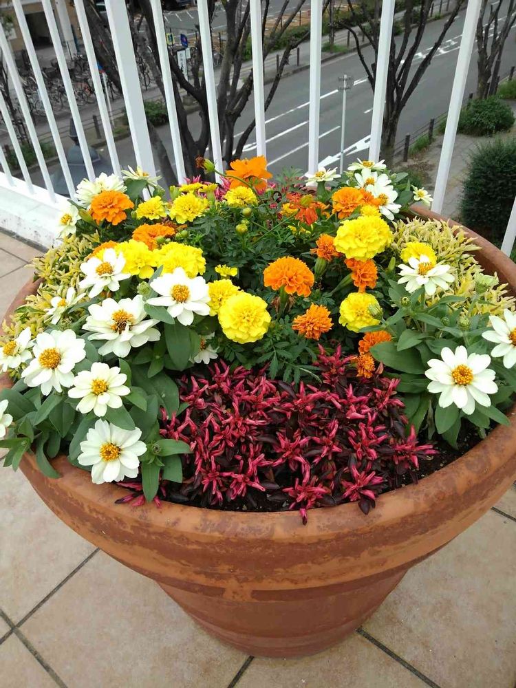 元気いっぱいの色合わせで、本当に安心感のある寄せ植えですね🌼🌼