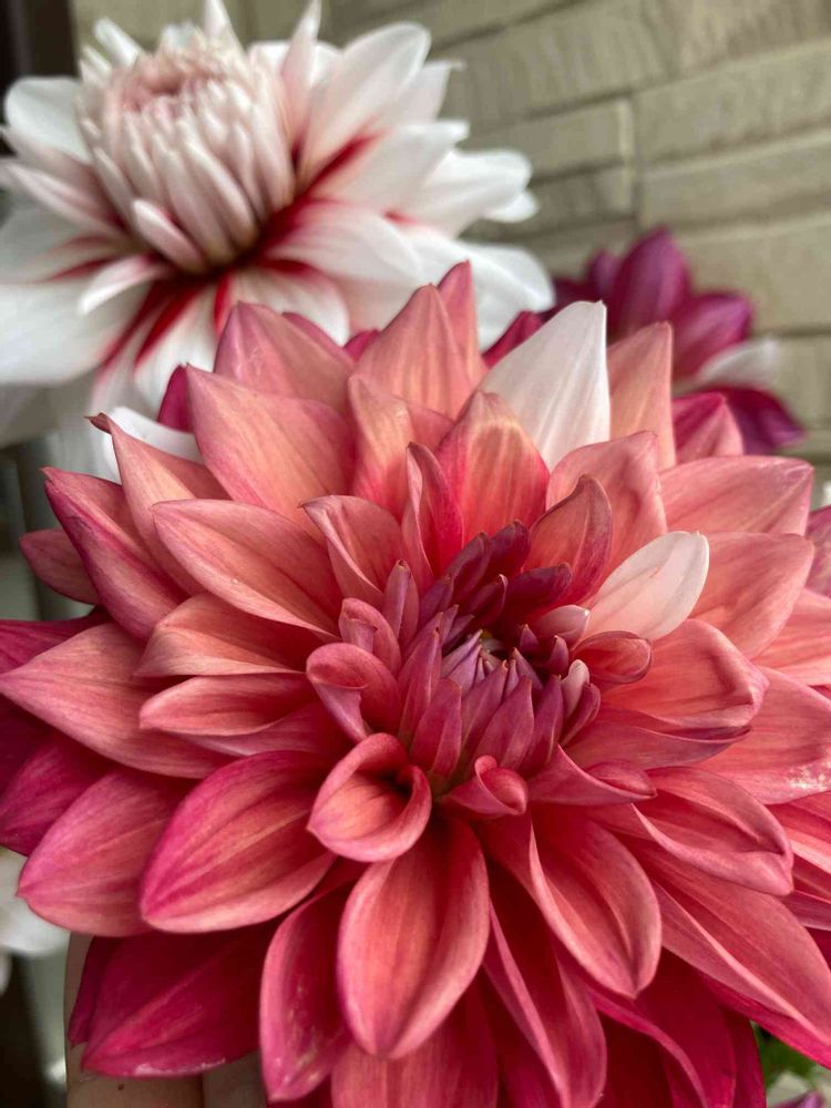 白と赤の混じり方が一つ一つ違うので面白いダリア ですよ