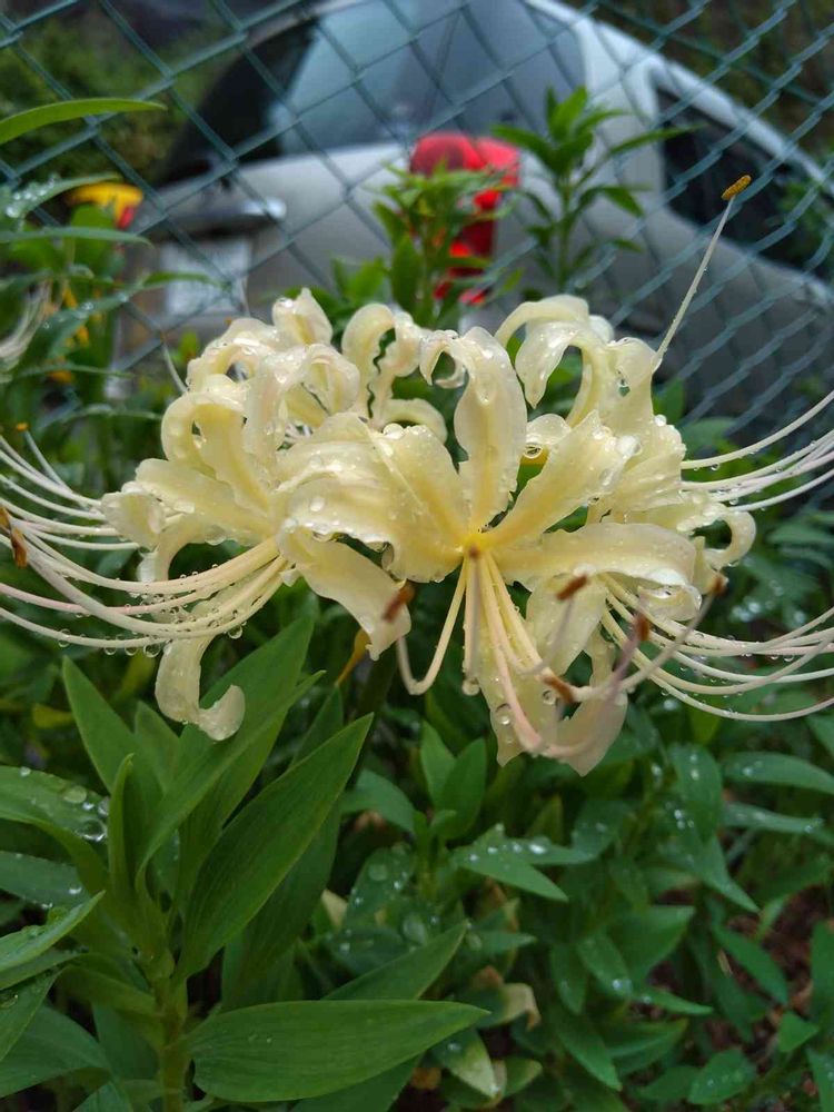 近所を散歩していたら、白いリコリス(彼岸花)が綺麗に咲いていました。
