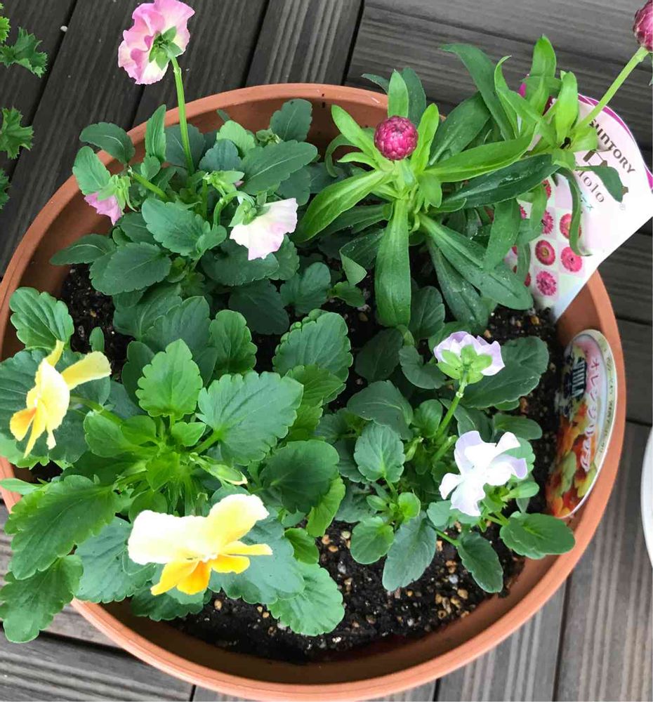ビオラとバンジーとコロロの寄植えしてみました🏵🌸可愛い〜