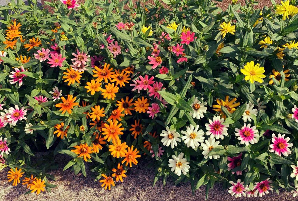 うちの庭のジニアは白がほとんどなんですが、散歩していたら色とりどりのジニアが咲いてるのを見つけました😀