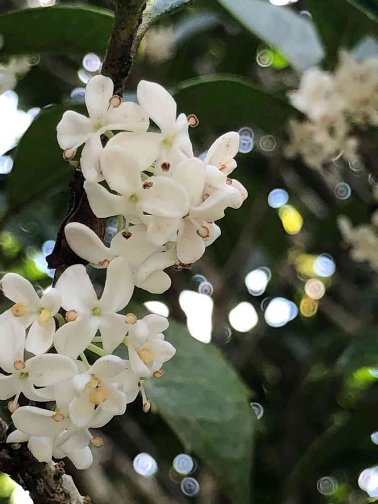 ギンモクセイです。白く小さな花からいい香りでした。木は大きいものでした。