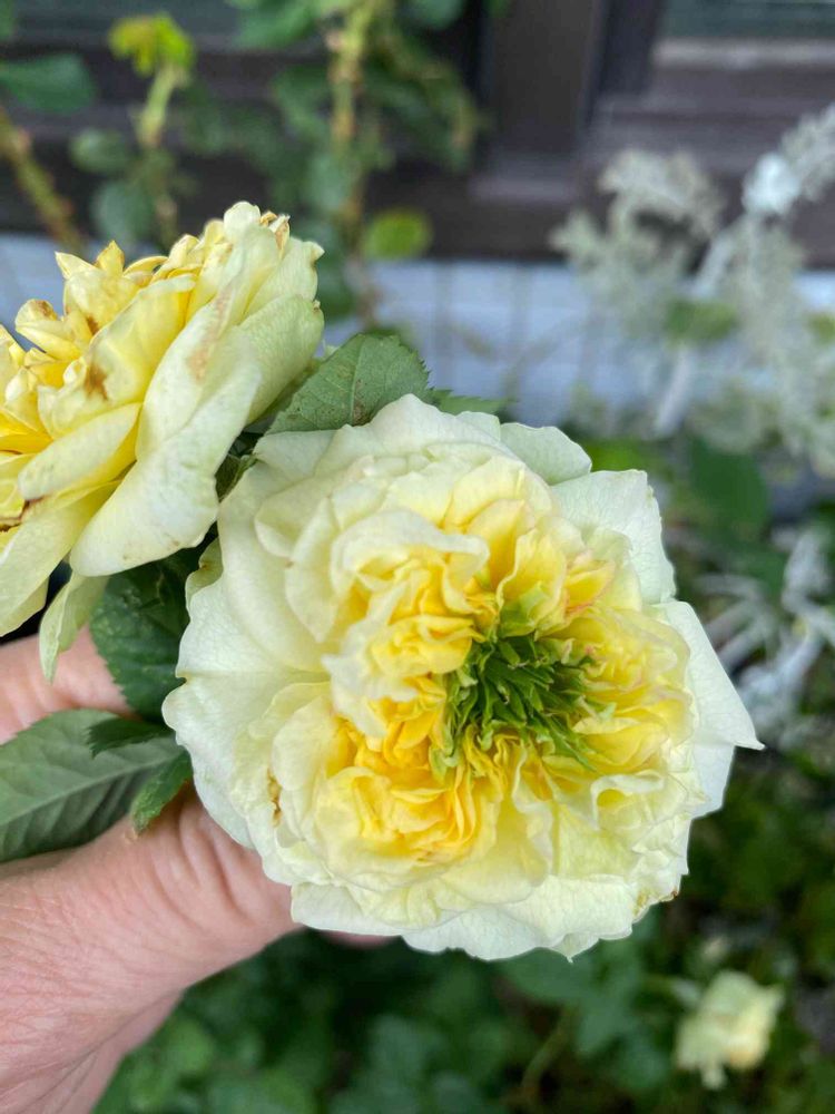 黄色い薔薇はブルヘッドで咲きました。サイズも小さいです。夏以降、こんな感じが多いです😰