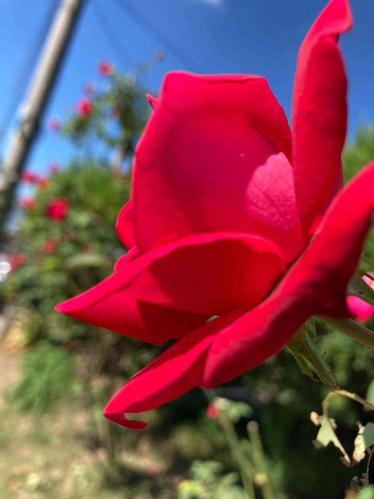 青空に映える🌹深紅のバラ🌹ですねぇ✨⤴️