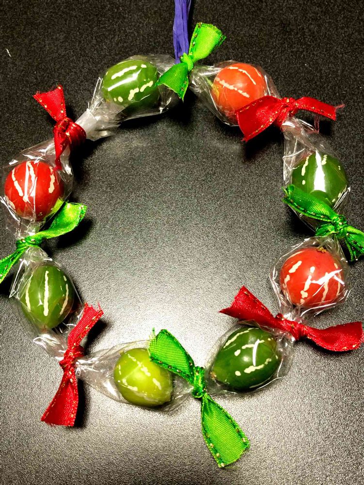 こんにちは。コメントありがとうございます🤗💕沖縄スズメウリを見た時に、飴玉だと勘違いしたのが、今回のアイデアのきっかけなんですよ。キャンディリースを長くすれば、キャンディレイになりますよ😆🎶