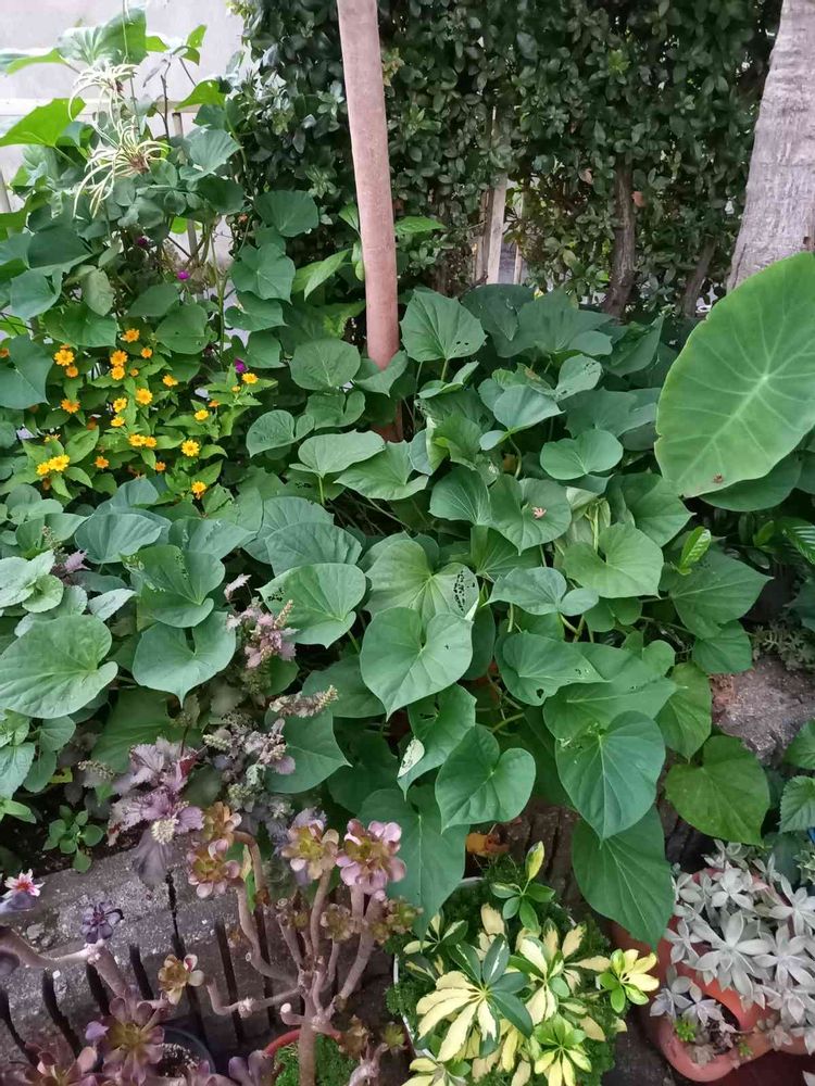 キッチンの片隅に放置してしまってたサツマイモ。小さな芽が出ていたので初夏に土に埋めておいたら こんなにワサワサに♪