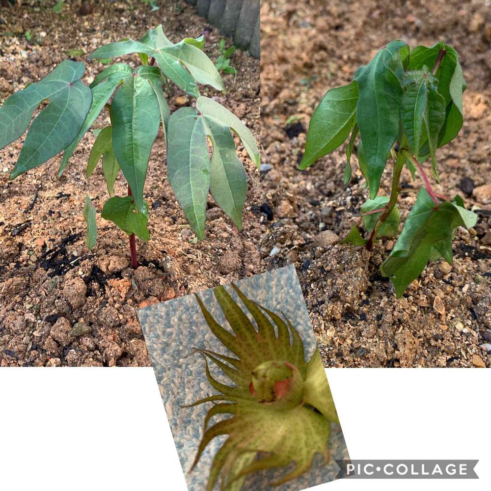 実は2本目と3本目のワタの木で、一本目の綿の木の、8月に収穫した種から発芽したものなんです😃 なかなか収穫までたどり着けない繊細さだけど💧とても気になる植物です😆