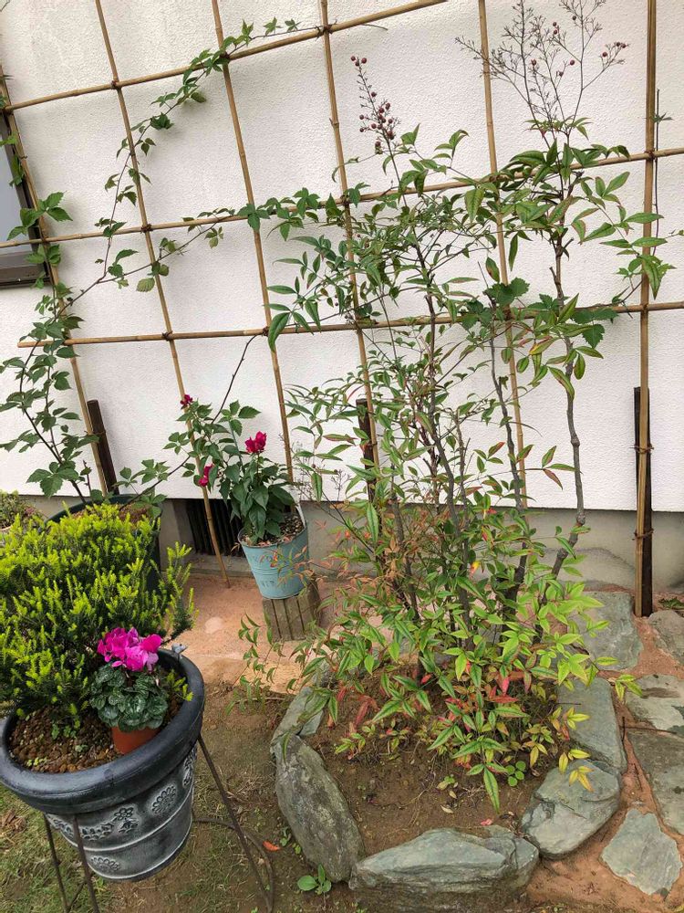 南天は前からあったのですが、裏庭にあった石で南天を囲みました。