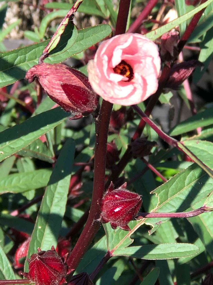 一昨日お出かけ先でたまたま立ち寄ったイタリアンレストランの敷地内にシェフの畑があり、そこでローゼルが栽培してありました。