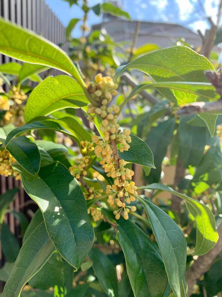 銀木犀は、🌱がトゲトゲしてて、金木犀は、🌱がツルツルしてるそうです。