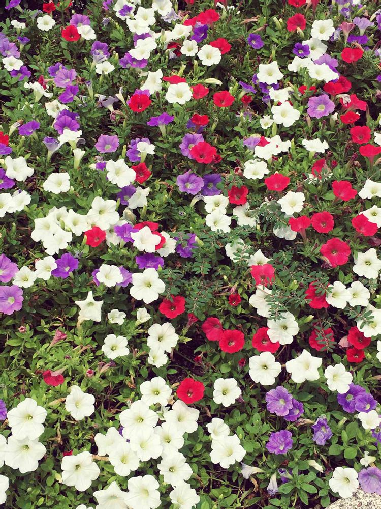 カラフルなペチュニア花壇♡とっても色あざやかできれいでしたぁ╰(*´︶`*)╯♡✨