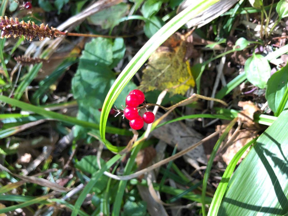 ありがとうございます!マイズルソウの実のようです。山の中で、赤い実がツヤツヤと光っていて、とても可愛かったです😊