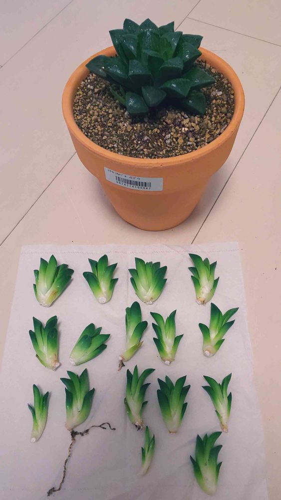 南森町のターゲットプランツさんで買ったハオルチア。ピカピカで綺麗だけど、子株が付きすぎて土にめり込んでたので外してみたら16個も子株が取れました。育てるぞ~~~!!!