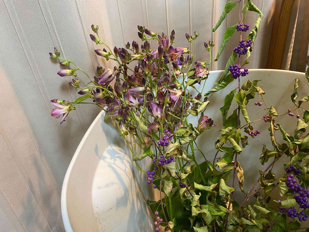 お庭から切ってきてくれ、水揚げしなくて葉っぱがどんどんしおれました。