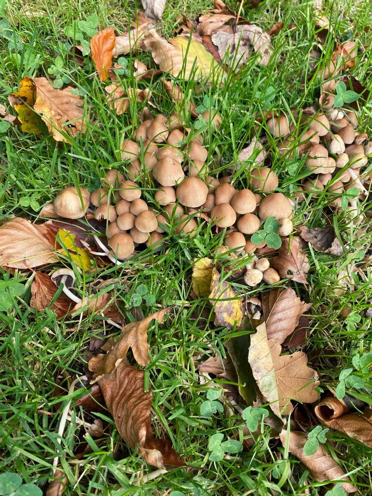 散歩してると公園などあちこちにはえているキノコ🍄これはシメジににてる立派なキノコ。食べられるのかな???