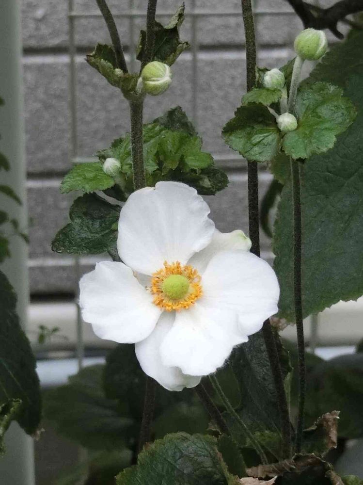 秋の風情を感じる白いシュウメイギク(秋明菊)が咲きました。
