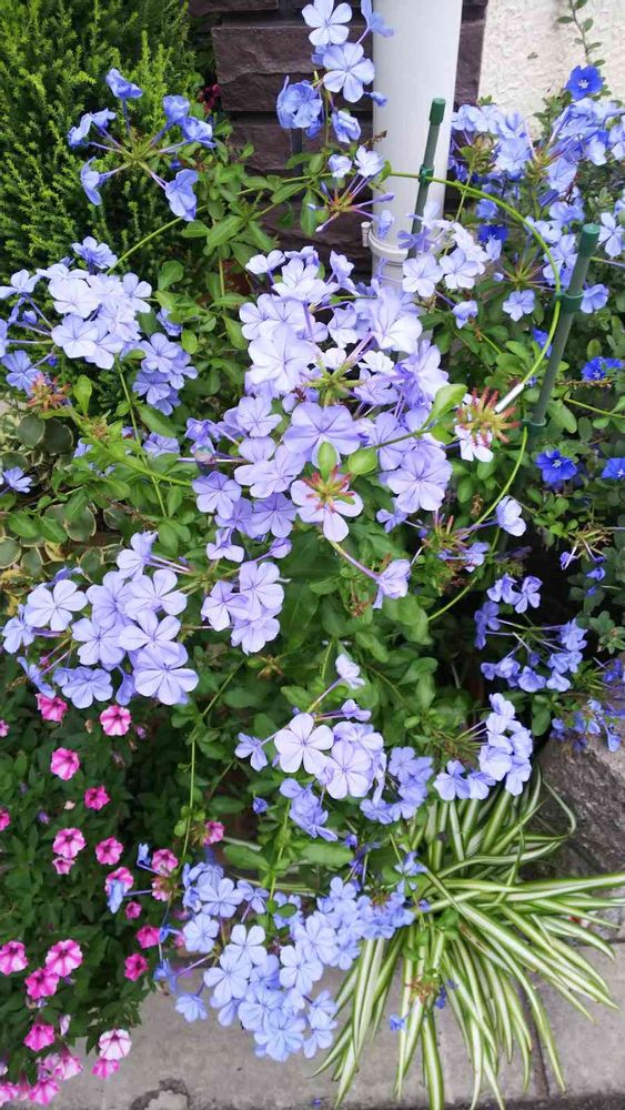 ルリマツリのブルーとピンクのペチュニアが可愛いですね😍
