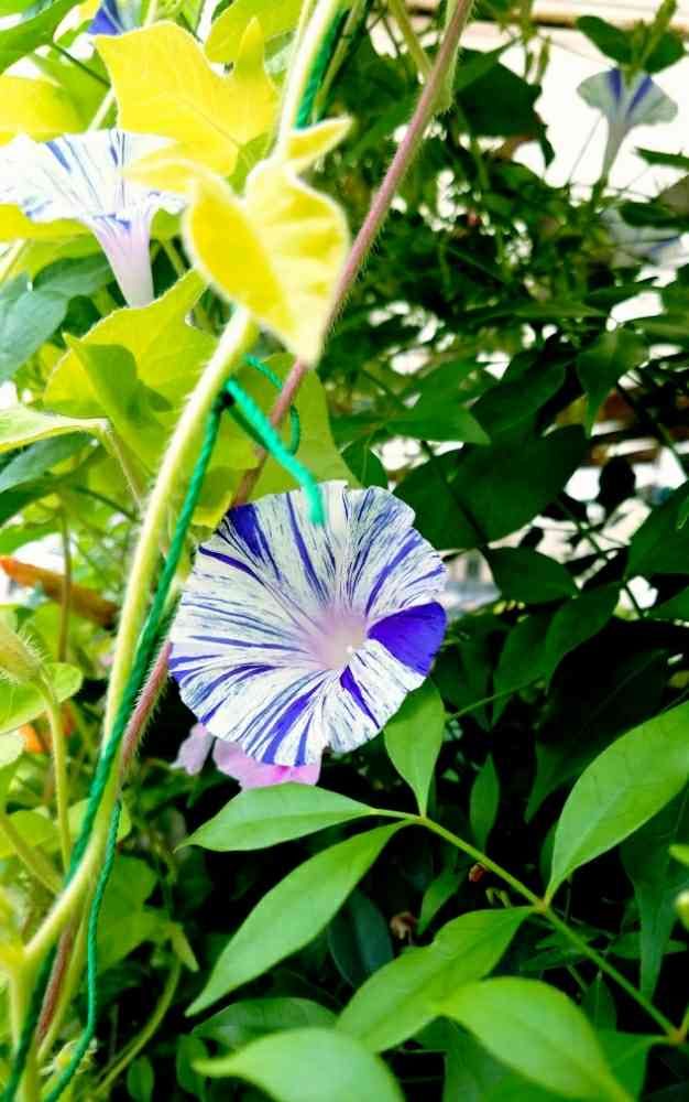 わが家でも色といい、花びらのしましまが素敵な朝顔。葉っぱばかり成長して花が咲かないの、種を頂き開花を待ち続けているのに、返答してくれません。このはなこゆきさんのpic見て癒されています。😊🎶