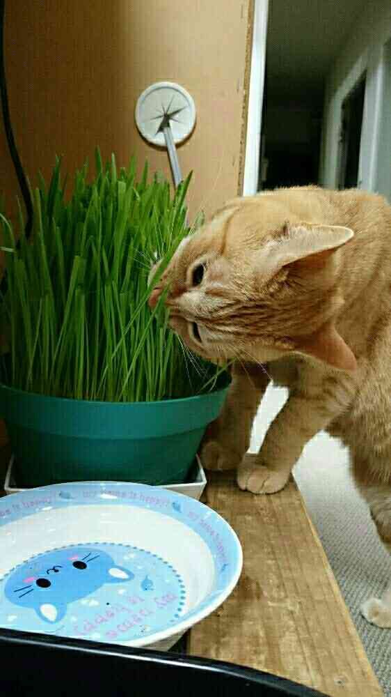 お母さんがいつも、新鮮な葉っぱをそだててくれてるにゃん🐱