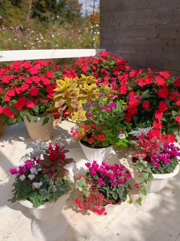 最近寄せ植えしたものだけで撮ろうしたけど、物足りない感じでしたので後ろにサンパチェンス置きました‼️