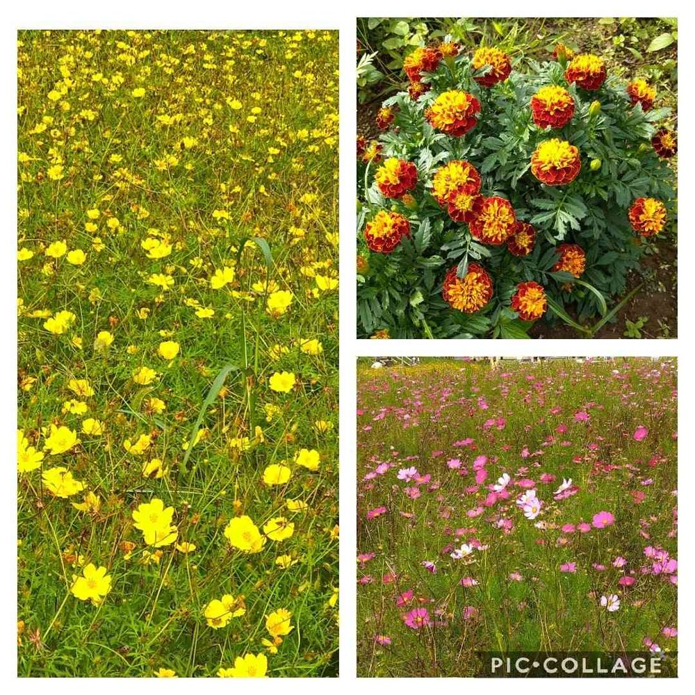 マリーゴールド、黄花、ピンクのコスモスさん💖🥳