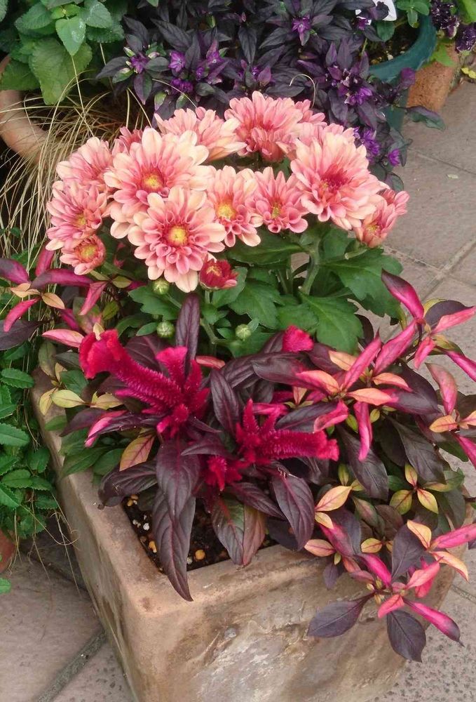 秋らしく、赤系で寄せ植えにしました❁*.゚