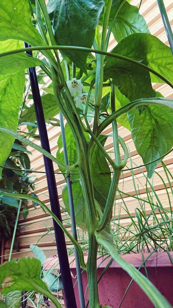 今から50日、行けるところまで頑張れ👍パプリカ 茎や葉柄の付け根に色素集積があるように見えるので、赤に一票😆‼️