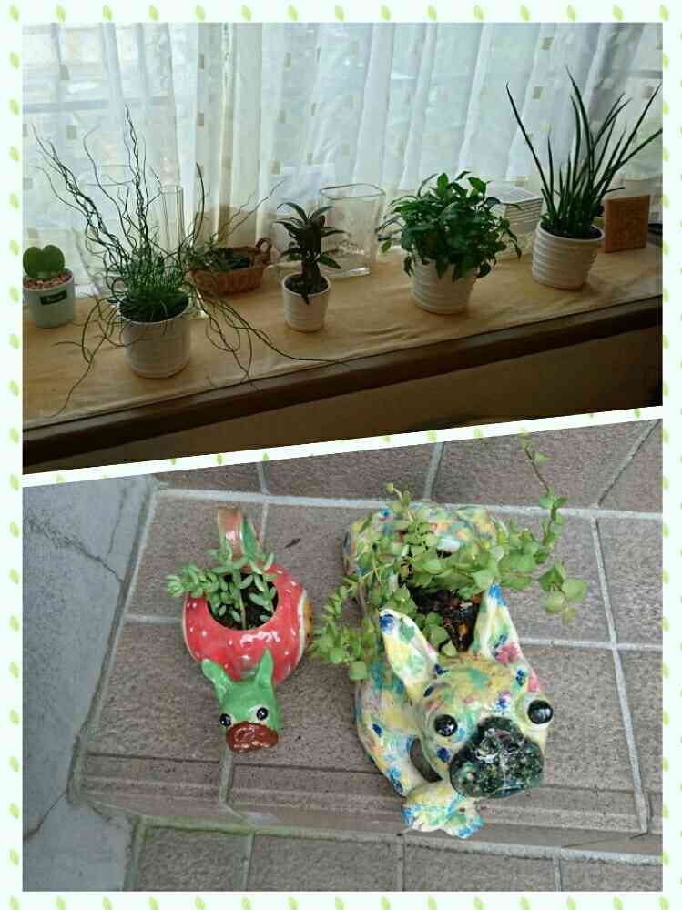 今朝、息子の作品に植えてみました。😃記念に1枚📷😅
