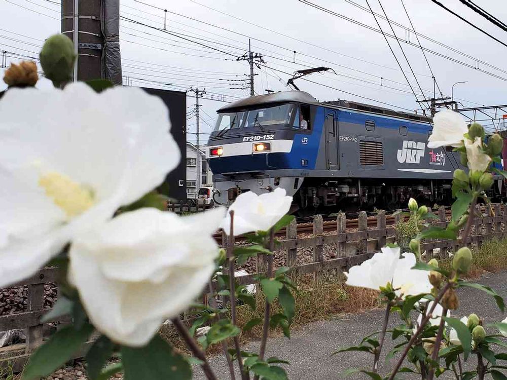 ムクゲ(木槿)と電気機関車(JR貨物EF210-152桃太郎)