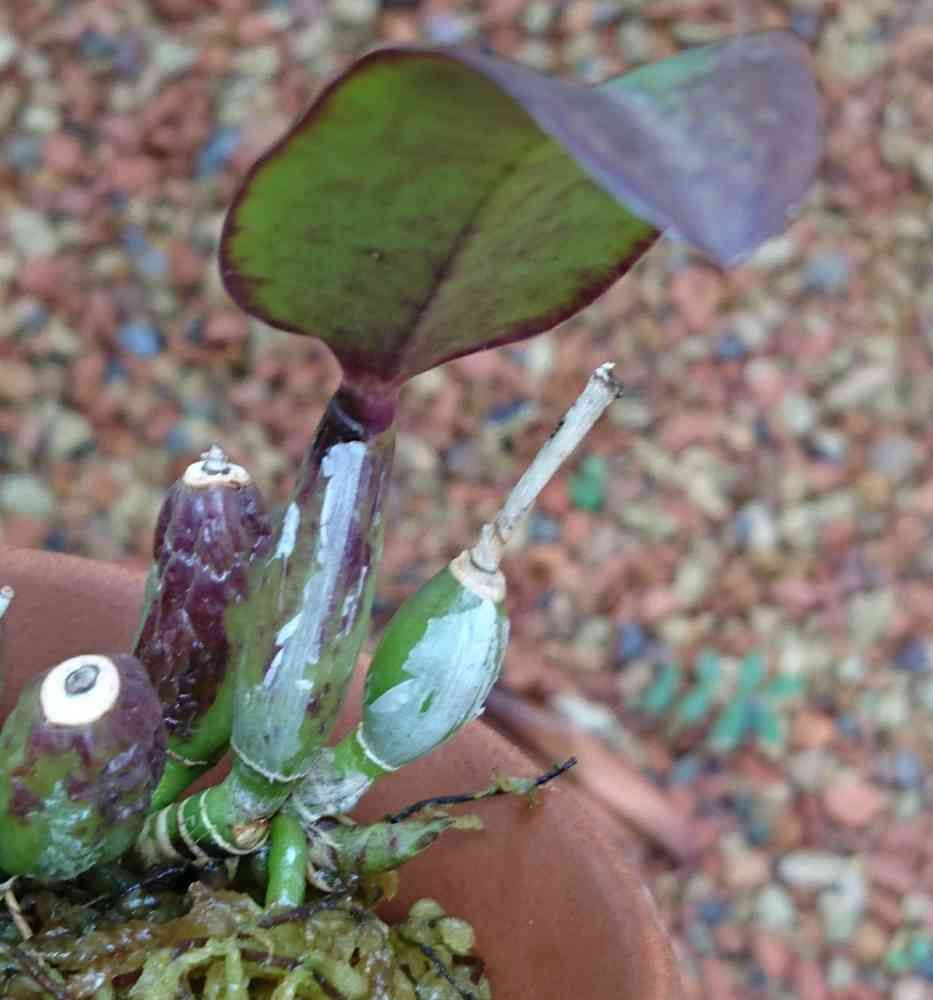 焦げたバックと、開花バルブの葉っぱは