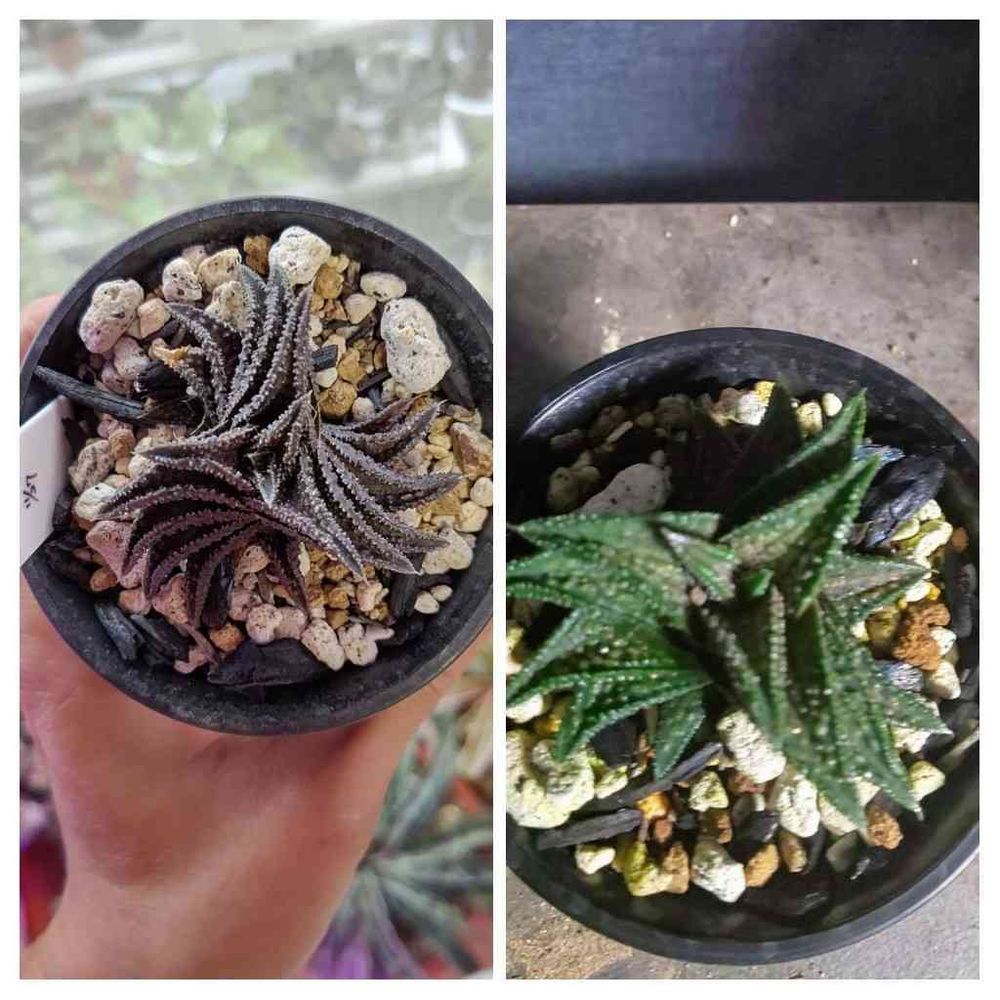 ⚫サボテン、アロエ、塊根など。 ⚫たまに「いいね」押してます。 --------------------------------------------------------- 【19.08】19年8月頃から徐々に多肉植物・サボテンの魅力に取り憑かれてしまいました。 【19.10.22】グリーンスナップを始めました。 【21年~22年】冬越しをほぼ室内避難しないチャレンジ。 【我が家の多肉植物・サボテン・観葉植物】220506時点 662/878 【セダム】3/6 ×春萌(19/11/3) ×プロリフェラ(20/2/1) ×薄化粧(20/2/5) ・※虹の玉(20/2/6) ・※虹の玉?乙女心?(20/2/6) 6・※黄麗(月の王子)(20/3/5) 【チレコドン】2/5 ×ブッコルジアヌス(19/11/3) ×スカエフェリアヌス 群卵(20/3/4) ×万物想(レティキュラーツス)(20/9/4) ・万物想(レティキュラーツス)②(20/10/2) 5・ワリチー(20/10/8) 【クラッスラ】10/17 ・天狗の舞(19/11/3) ・紅稚児(19/11/3) ×姫花月(19/11/3) ・テトラゴナ(19/11/12) ・火祭り光(19/12/4) ×花月錦白斑(19/12/4) ×※花月(金のなる木)(19/12/12) ・神刀錦(20/1/8) ×キムナッキー(20/1/10) ×10・※メセンブリアンセモイデス(ラージフォーム)(20/1/23) ×※花月?黄金花月?⇒火祭り錦?(20/1/23) ・巴(20/2/27) ・※火祭り(20/3/5) ・ゴーラム(20/12/16) ・神刀(20/12/24) ×アイボリーパゴタ(20/12/24) 17・spトランスバール ドラケンスバーグ(20/12/24) 【カランコエ】1/19 ・錦蝶(19/10/19) ×不死鳥錦(19/10/24) ×カーニバル(19/12/4) ×※月兎耳?(19/12/26) ×唐印(19/12/28) ×テディベア(20/1/10) ×ファング(20/1/11) ×ミロッティー(20/1/23) ×※黒兎耳?月兎耳?(20/2/6) ×10・※胡蝶の舞(20/2/6) ×星兎耳(20/2/12) ×ゴールデンバニー(20/2/12) ×福兎耳(20/2/12) ×姫黒兎耳(20/2/19) ×※シナモン?孫悟空?(20/2/19) ×キューエンス(20/2/19) ×※月兎耳(20/2/20) ×黒兎(20/2/20) 19×シナモン(20/2/21) 【センペルビウム】13/17 ×巻絹(19/9/6) ・パシフィックナイト(19/9/14) ・※百恵(19/12/12) ×※高嶺の華(19/12/12) ・※綾桜(19/12/12) ・※ファイヤーバード?パルグラム?(19/12/12) ・※レッドチーフ?ウラヌス?(19/12/12) ・※シャンハイローズ?(20/2/4) ・※神風?(20/2/4) ×10・※綾桜?(20/2/4) ・※麗人盃?(20/2/4) ・※雪牡丹?(20/2/4) ×※紅牡丹?(20/2/4) ・※ラウンドシーン?(20/2/4) ・※巻絹?(20/2/6) ・レッドベル(20/2/19) 17・※ご近所さん(20/5/17) 【ガステリア】39/43 ・春鶯囀バテシアーナ(19/11/20) ・グロメラータ(19/11/20) ・臥牛(19/11/20) ・リリプターナ(子亀姫)(19/11/20) ・白星竜(ベルコサ)(19/11/20) ・錦沙戸宝(19/11/20) ・ニティダ(19/11/22) ・フロッキー(19/11/22) ・姫子宝錦(19/11/24) 10・虎鉾(19/11/24) ・富士子宝錦(19/11/26) ・照姫(19/11/27) ・恐竜×大桑臥牛(19/11/29) ・颯々の松(19/11/29) ・ドラゴンスキン(19/12/2) ・名前不明⇒グリーンワイパー(19/12/4) ・黒鶯囀(19/12/4) ×臥牛錦 糊斑(19/12/4) ・白臥峰ダルマタイプ(19/12/4) 20・バイリシアナ×グロメラータ(19/12/10) ・ピランシー錦※斑多め(19/12/24) ・ピランシー錦※斑少なめ(19/12/24) ・臥牛竜(19/12/24) ・グラキリス(虎の巻)(19/12/25) ・ホワイトパール(20/1/7) ・白銀水牛(20/1/7) ・エクセルサ(20/1/8) ・ダルメシアン(20/1/10) ・タワー(20/1/23) 30・クロチェリー(20/1/23) ×ニグリカンス f.dark monstrosa(20/2/27) ・金剛殿(20/2/27) ×ラウリンソニー(20/3/13) ・幅広ピランシー(20/4/7) ・恐竜×白点臥牛(20/4/7) ・恐竜(20/11/9) ・ラウリンソニー②(20/11/19) ・恐竜②(21/1/12) ・恐竜×春鶯轉(21/1/13) 40・ホワイトパール②(21/1/13) ×ラウリンソニー③(21/2/10) ・エレフィアエ(21/4/13) 43・臥牛②(21/6/14) 【ディッキア】49/52 ・ハイブリッド(19/11/6) ・(アリソナ×マルニエルラポストレイ)×ボーン(20/2/21) ・アリゾナ(20/3/13) ・ニッケルシルバー(20/3/13) ・縞剣山錦(20/3/18) ・(ケリー×マセドイ)×ヘブディング ビッグブルーF1(20/3/24) ・ターザン(20/7/15) ・ゴエリンギー(20/7/15) ・エステベシー(20/7/16) ・グランマルニエル スノウ(20/8/21) ・ダウソニー(20/9/9) ・コリスタミネア パープルフォーム(20/9/16) ・マイケルアンドレス(ブリットルスターF3)(20/9/16) ・ゴエリンギー レッドクローン×ターザン(20/9/18) ・ターザナ(20/9/18) ・レッドボーン×スカイウォーカー(20/10/27) ・グランマルニエル(20/11/4) ・トゥーシ―F2(シルバークローン)(20/11/4) ・グレイオプス(20/11/5) 20・タイニーレッド×ヘブンアンドヘル(20/11/5) ・マルニエルラポストレイ エステベシー シーディング ブラジル(20/11/5) ・(レッドシャーク×ディストーション)×ジョーズ(20/11/5) ・ブラックアイス(20/11/6) ×ダウソニー×ガーネットクロウ(20/11/12) ・デリカータ(20/11/18) ・エステベシー×ゴエリンギ―(20/11/30) ・ゴエリンギーOPS セレクト ホワイト(20/11/30) ・(ソウフィッシュ×7a)×ターザン(20/11/30) ・ベアテアエ レッドクローン(20/12/07) 30・アリゾナ×HU-5(20/12/08) ・エステベシー②(20/12/08) ・ダコタ(20/12/09) ・マルニエルラポストレイ(20/12/10) ・エステベシー×ブリットルスターF2(21/1/8) ・マウンテンオブニードルズ(21/1/14) ・エステベシー③(21/1/27) ・パラファット(21/2/10) ・ジョーズ×ドナマリエ(21/3/15) ×フォステリア×エステベシー(21/3/15) ×40・フォステリア×エステベシー②(21/3/15) ・カタナ(21/3/24) ・スノーストーム×ブライヤーパッチ(21/3/24) ・ワサビ(21/4/7) ・ブラックアイス②(21/4/12) ・ブラ