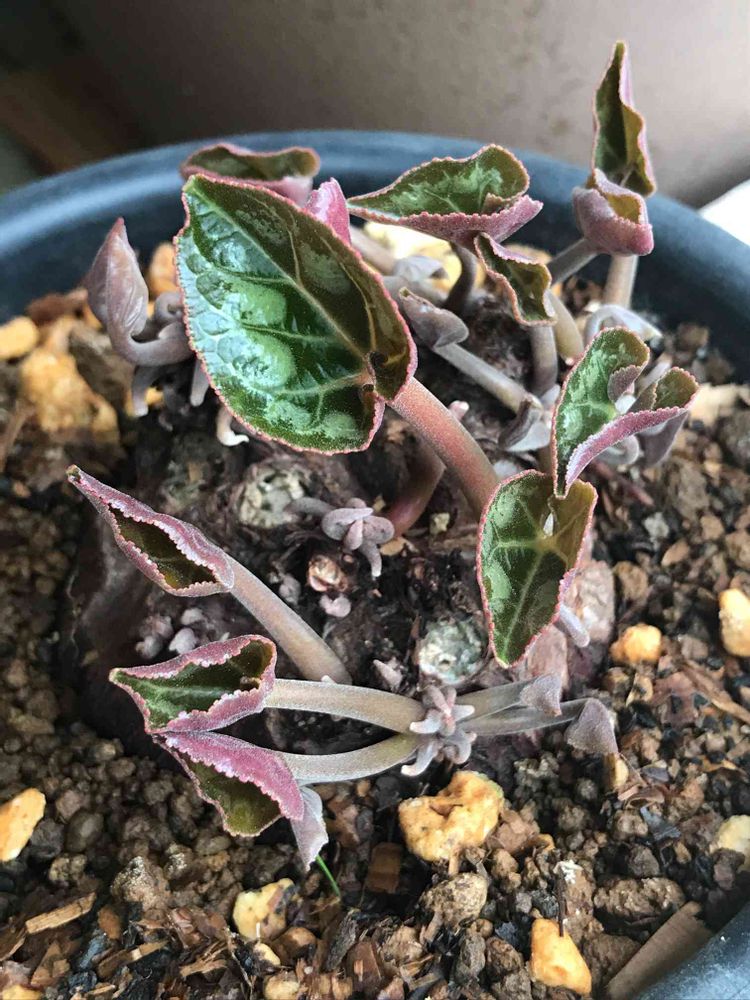 今日のお花ですが、我が家の夏越しシクラメンはまだまだ起きたばかりです。