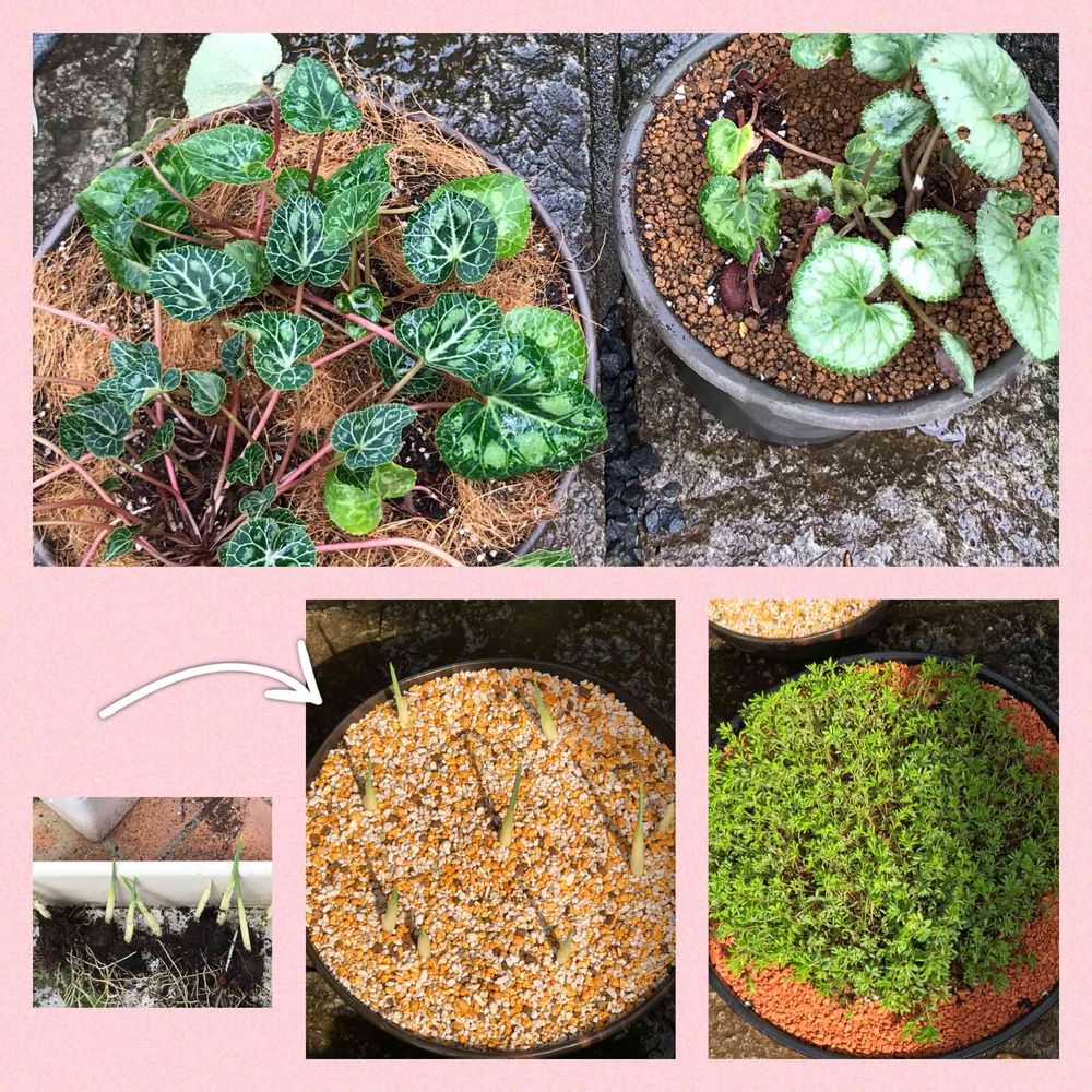 夏前まで咲いていたガーデンシクラメン、ガッツリ休眠したのは、やっと新芽がチョロチョロ😆