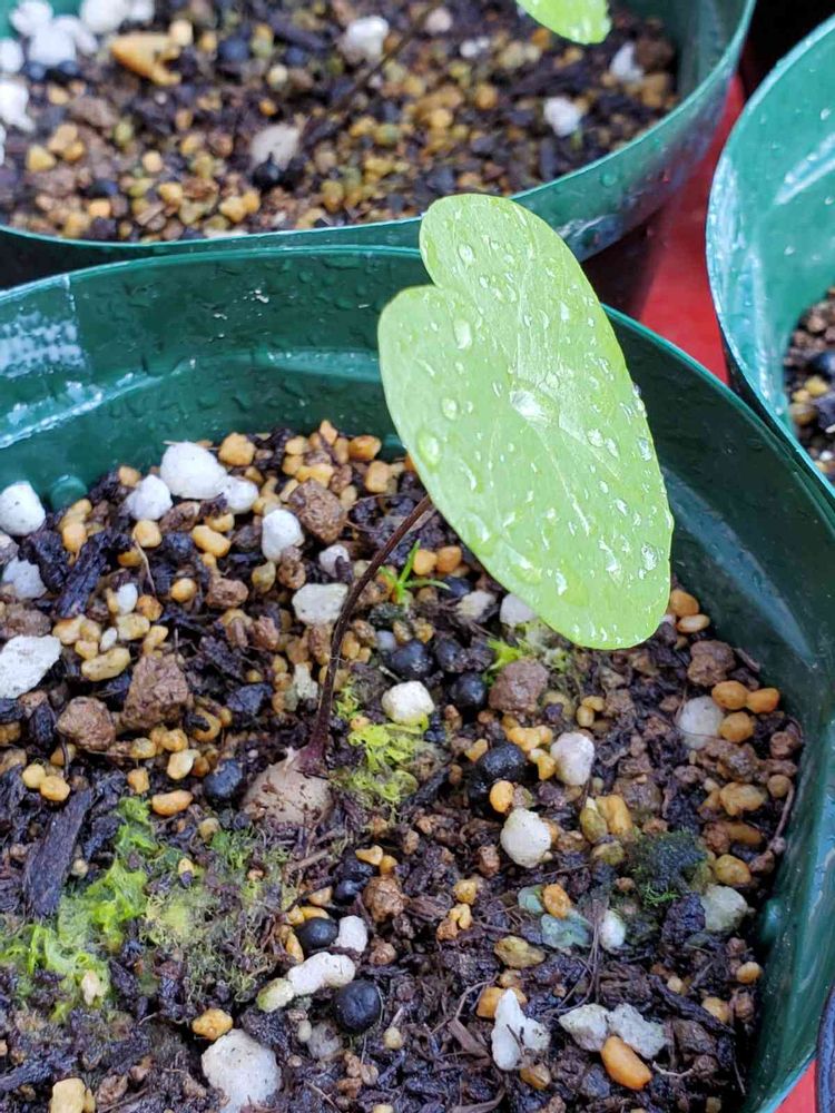 亀の甲羅のような根っこから、ツルが伸びます。ハート❤️の葉っぱです