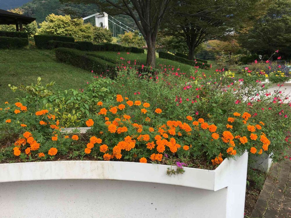 イングリッシュガーデンのマリーゴールドとチェリーセージ🍒🌼